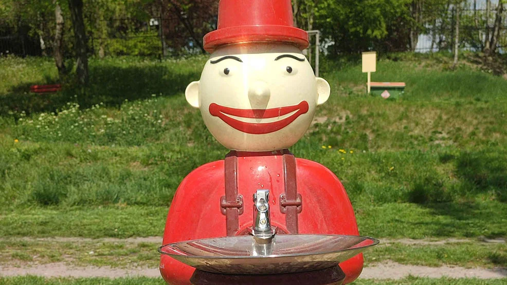 Urządzenie w formie pajaca, które znajduje się na największym placu zabaw w Gostyniu, przy ul. Leszczyńskiej (na tzw. „wałach” ) w poprzednim sezonie zostało zniszczone (jakby się komuś nie podobało). Konieczna była renowacja. Naprawione "poidełko" wróciło na swoje miejsce i również działa.