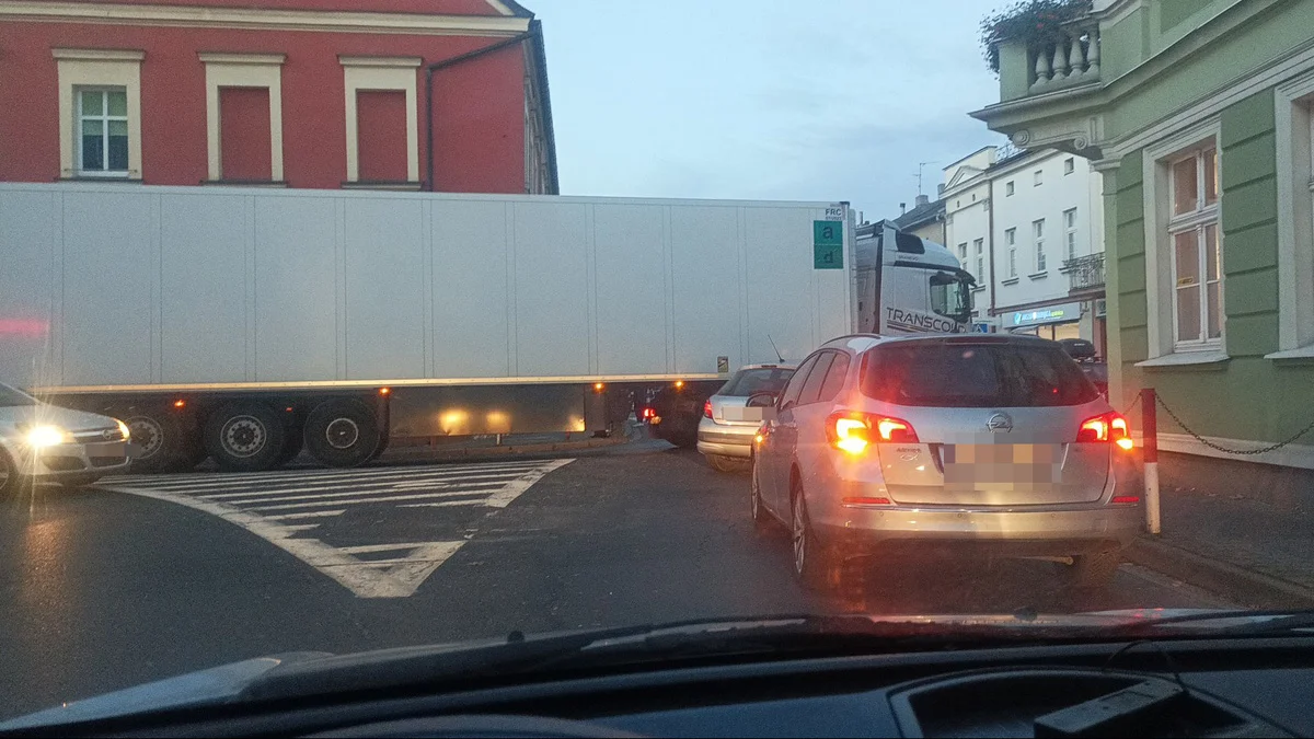 W poniedziałek, 7 listopada, około godz. 16.30, przejazd przez skrzyżowanie ulic Wrocławskiej, Powstańców Wlkp. i Kolejowej w Gostyniu zablokował samochód ciężarowy marki Mercedes. Stanął w poprzek i nie mógł się ruszyć, gdyż zderzył się z osobowym volkswagenem, który prowadziła 36-letnia kobieta. Kierowca ciężarówki dojechał do skrzyżowania prawdopodobnie prowadzony przez nawigację GPS i próbował wjechać w ulicę, na której obowiązuje zakaz poruszania się pojazdów ciężarowych.