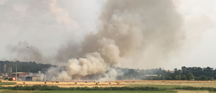Zaczęło się od maszyny rolnicznej. Ta najprawdopodobniej się zapaliła, a po niej ogień zajął ściernisko na polu w Grabonogu. Prasa spłonęła niemal doszczętnie.