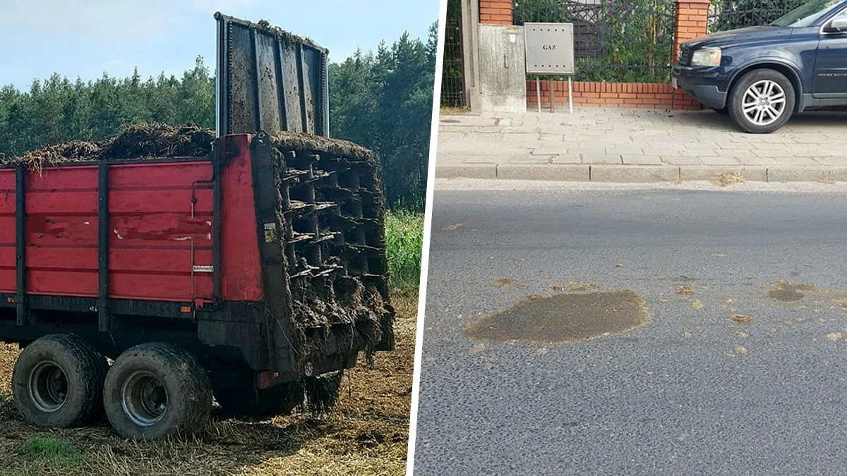 Interweniowała w tej sprawie policja, więcfunkcjonariusze ustalili, że rozrzutnik, który podpięty był do ciągnika rolniczego uległ awarii. Cały czas wypadał z niego obornik, który bardzo zanieczyścił drogę. Zapach też był okropny. Tak to śmierdziało, że od policji się dostało... rolnik otrzymał mandat w wysokości 200 zł.