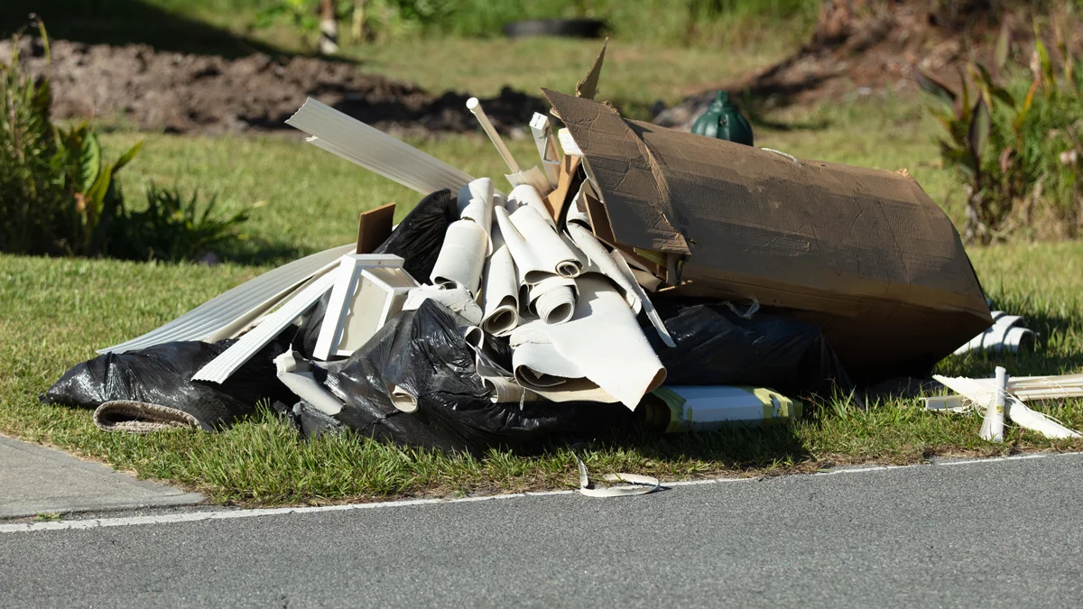 - odpady budowlane i rozbiórkowe (dachówki, deski drewniane, belki, panele, płoty, płytki, grzejniki, kostka brukowa, płyty chodnikowe, cegła, opakowania po farbach i lakierach, folia i inne odpady budowlane),