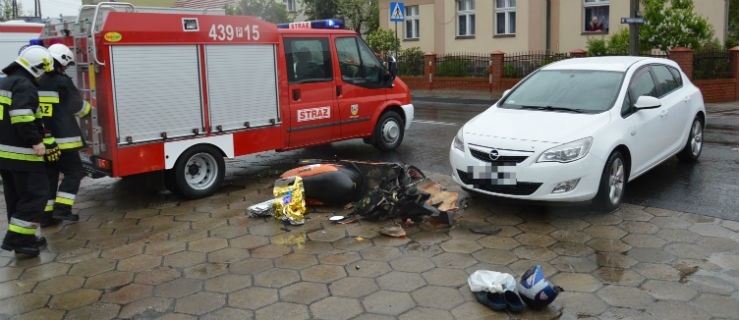 - Natomiast skuterem jechały dwie osoby, z których jedna jest poszkodowana, prawdopodobnie doznała urazu kończyny dolnej. Została zaopatrzona najpierw przez strażaków, a następnie zespół ratownictwa medycznego - relacjonuje kapitan Marcin Nyczka, rzecznik prasowy Komendy Powiatowej Państwowej Straży Pożarnej w Gostyniu.