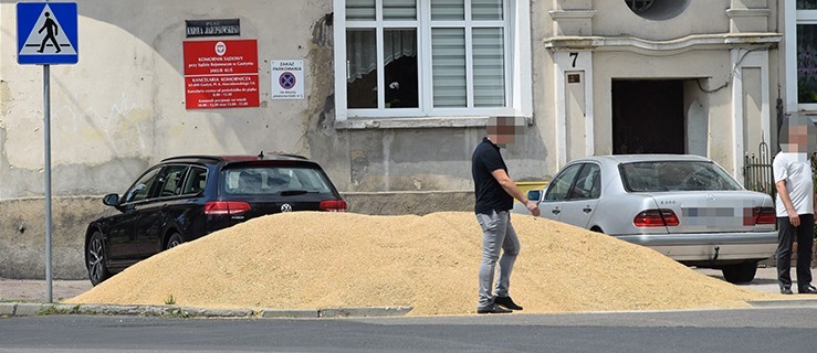 Inny świadek, przejeżdżający w pobliżu na rowerze uzupełnił, że pod kamienicę podjechał ktoś ciągnikiem i „dwie przyczepy miał tego”. - Z jednej ziarno wysypał, z drugą pełną odjechał - dodał mężczyzna.